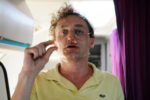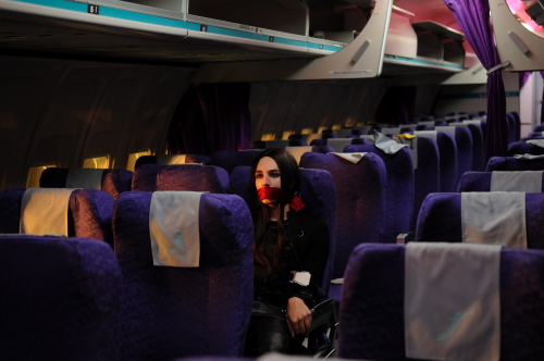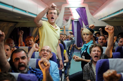 « C’est ma petite névrose. J’adore cette liberté dans un monde de contraintes. Je voulais tourner dans un avion mais soit c’était impossible parce que l’appareil était en vol, soit on nous mettait en bout de piste d’un aéroport. Alors on a tourné dans un vieux Boeing 737, au fond d’un hangar, en juillet 2010. C’était l’enfer, avec la chaleur, les odeurs, peu d’axes pour tourner. On était plus de cent par moments dans l’avion. Avec nos petits ventilateurs… Je rêvais d’un décor d’avion et d’un vrai esprit de troupe. Je sais que le genre est mal vu en France mais il y a peu de comédies dans les avions. Pour moi, c’était l’occasion de créer un contexte. Ce n’est pas un brûlot contre les compagnies low-cost. »